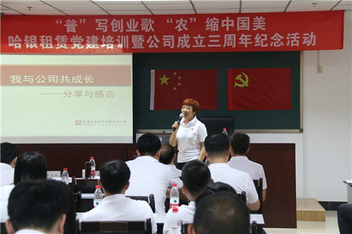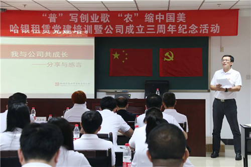2017年6月12日,哈銀租賃以“‘普’寫創(chuàng)業(yè)歌,‘農(nóng)’縮中國美”為主題,在北京開展了黨課培訓(xùn)暨公司成立三周年紀(jì)念活動,以特別而富有意義的方式紀(jì)念公司成立三周年。公司董事長高淑珍,監(jiān)事會、經(jīng)營班子及全體員工參加活動。